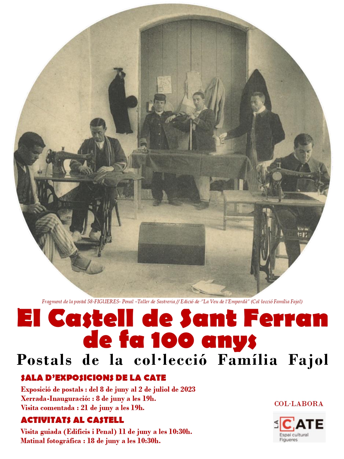 11 de juny a les10:30: Matinal de descoberta al Castell de Sant Ferran de l’estat actual dels indrets fotografiats fa 100 anys, amb especial atenció a l’antic Penal, a càrrec de Carlos Díaz Capmany, President de la Junta de Promotors del Consorci que gestiona el monument.