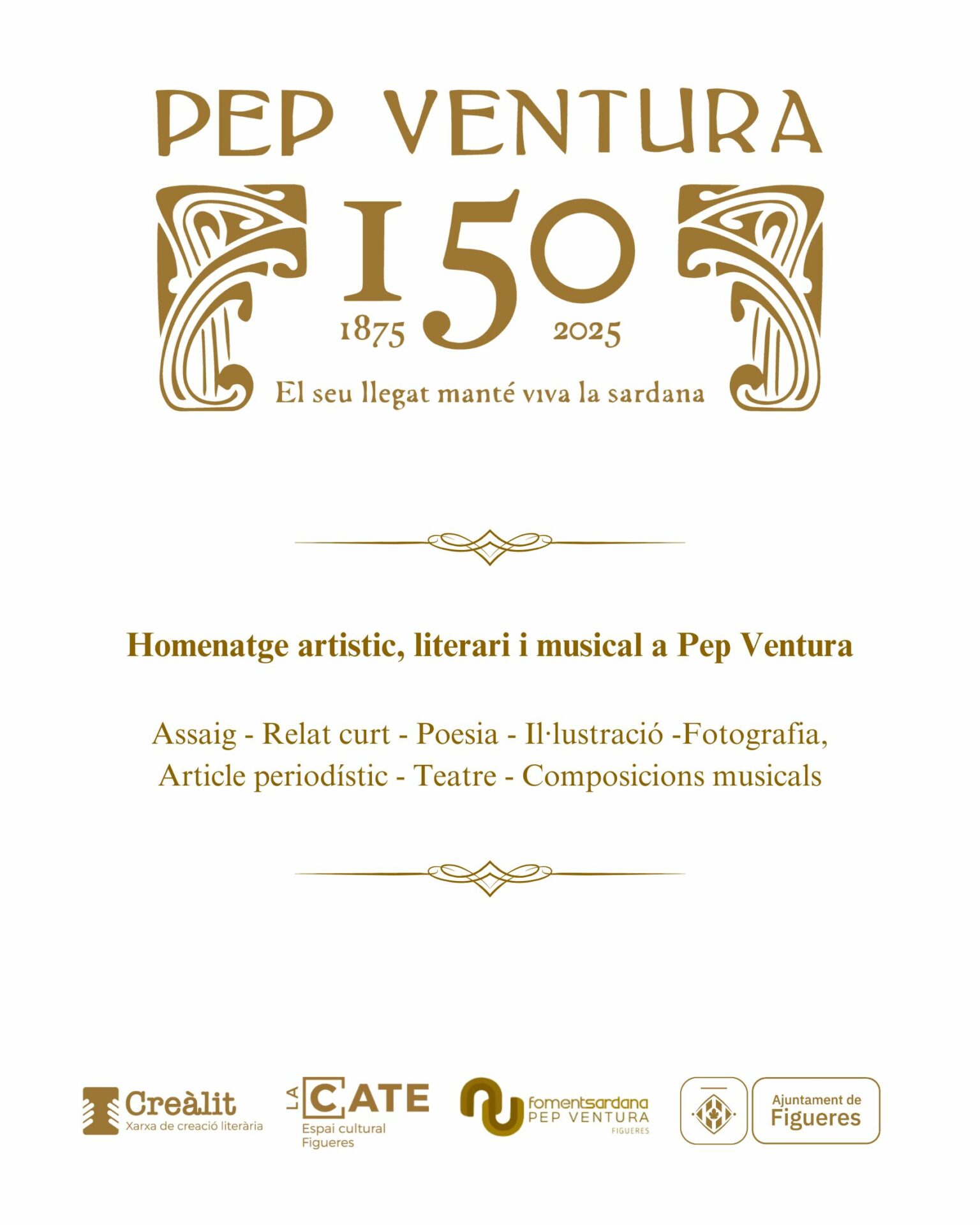 El 2025 es va commemorar el 150è aniversari de la mort de Pep Ventura. Amb aquest motiu, Creàlit es va posar en marxa per fer un homenatge ciutadà a l’il·lustre músic en una forma eminentment literària. Per a fer-ho, es va aliar amb l’Ajuntament de Figueres i amb el Foment de la Sardana Pep Ventura en una crida ciutadana a escriure textos sobre Ventura, fossin de ficció o no. El resultat és aquesta miscel·lània que conté poesia, teatre, contes; un text periodístic, una memòria, i també fotografia i il·lustració, a més d’un parell de composicions musicals.